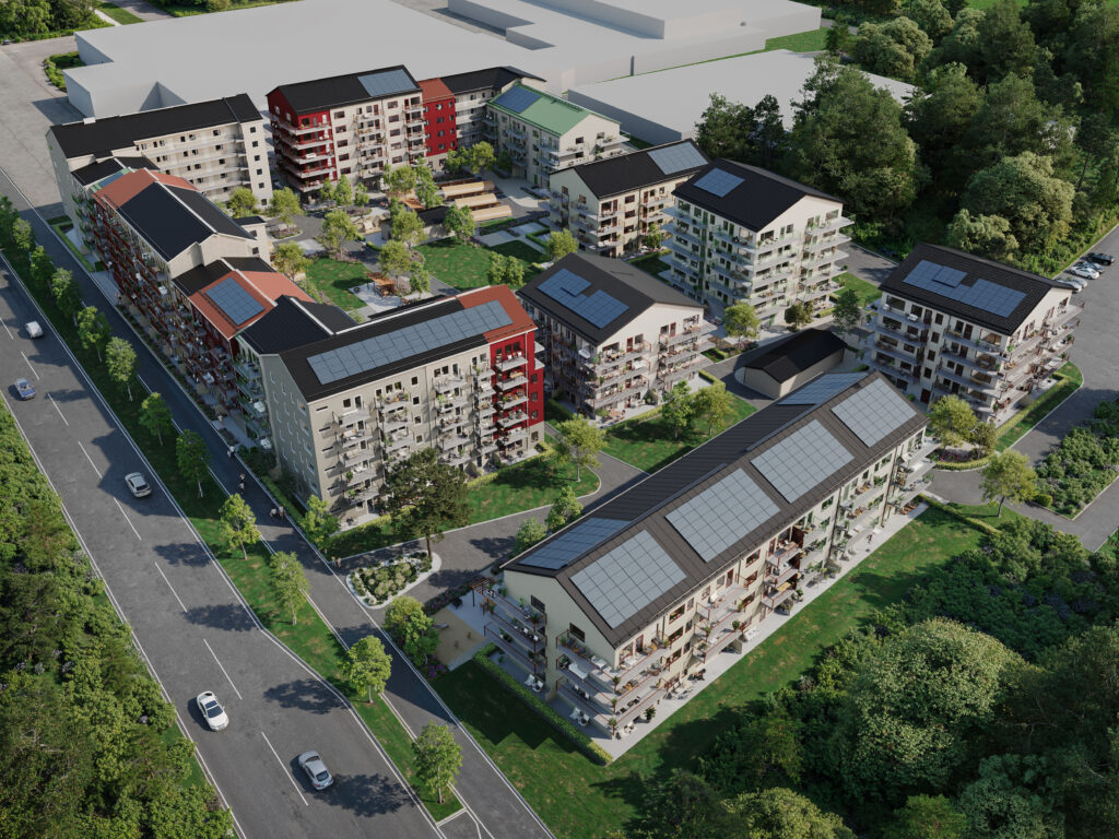 Här utvecklar vi totalt 324 hyreslägenheter, som släpps i fyra etapper. Först ut är 34 välplanerade lägenheter i vårt koncept punkthus, med preliminärt tillträde 1 september 2026.